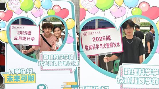 在学院迎新报到点,一块充满数理特色的打卡拍照板成为新生报到的“热门景点”。“来,我们和打卡板合张影,记录下第一次以‘数理人’身份打卡的瞬间!”有的新生手持录取通知书站在拍照板前微笑,有的与家长并肩留下温馨合影,快门声此起彼伏,一张张照片定格下新生与重科数理的美好初遇,也让新生在互动中加深了对学院的归属感。