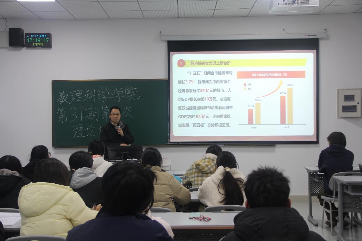 为引导青年学生深入学习贯彻党的二十届四中全会精神,12月12日下午,数理科学学院在厚德楼G316教室开展第三十一期“青年马克思主义者培养工程”第一次理论培训。本次培训邀请数理科学学院副院长张家伟作为主讲嘉宾,共33名培训班学员参加。