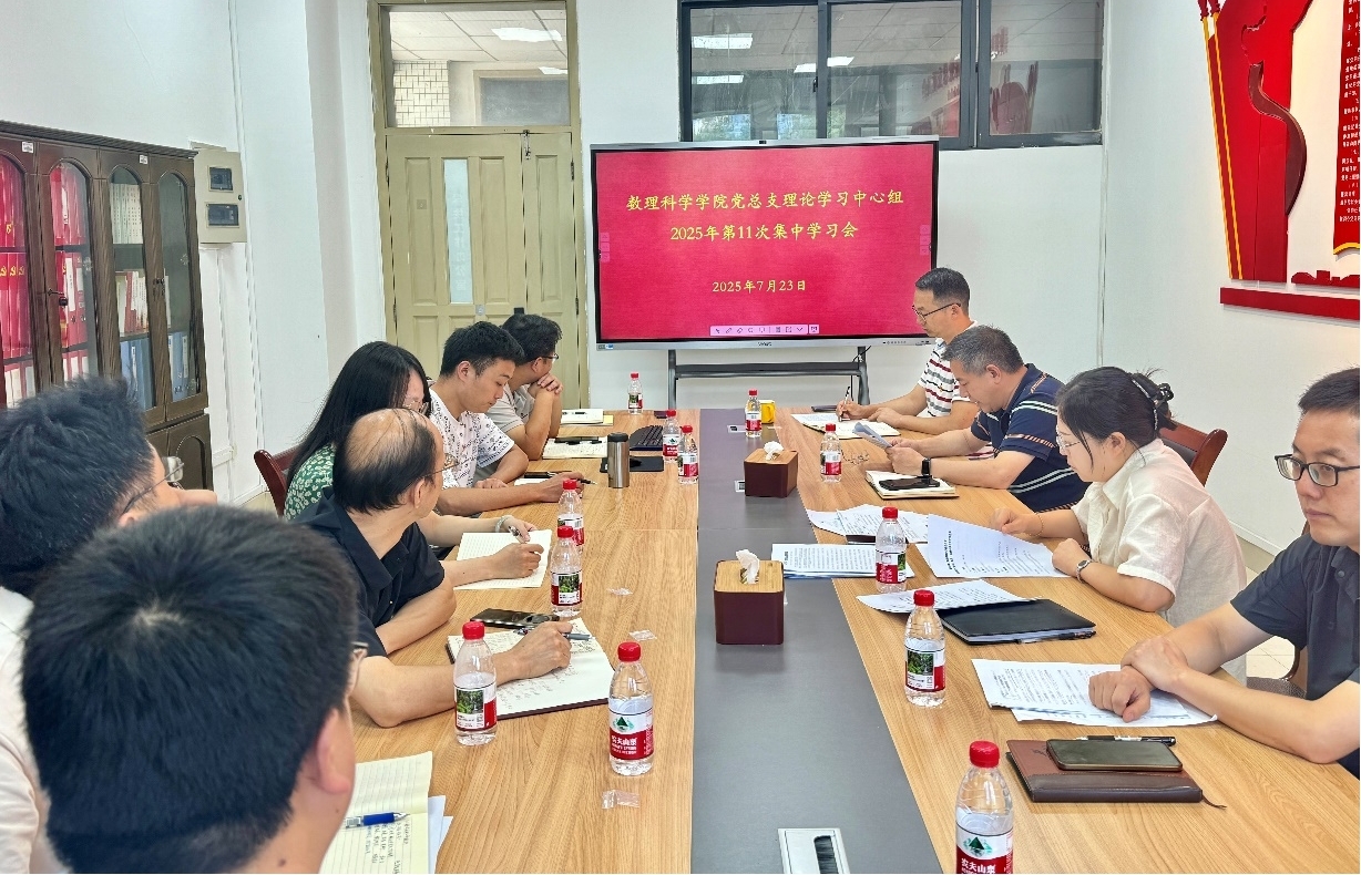 7月23日,数理科学学院党总支在厚德楼G417-2会议室召开理论学习中心组2025年第11次集中学习会。学院党总支理论学习中心组成员参加会议,科级干部列席会议。会议由学院党总支书记曾玥蓉主持。