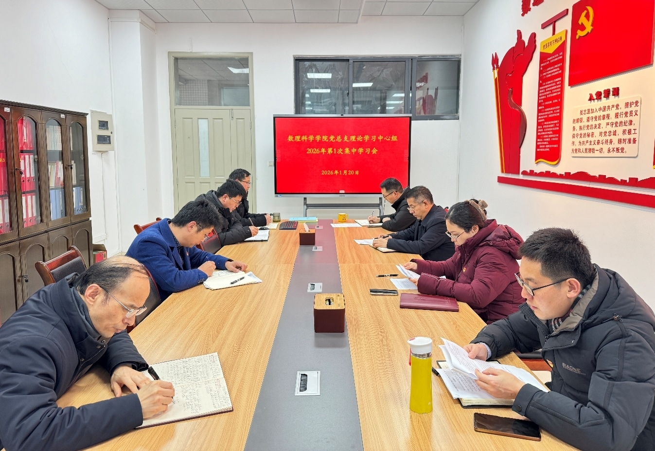 1月20日,数理科学学院党总支在厚德楼G417-2会议室召开理论学习中心组2026年第1次集中学习会。学院党总支理论学习中心组成员参加会议,学科科研专干、科级干部列席会议。会议由学院党总支书记曾玥蓉主持。