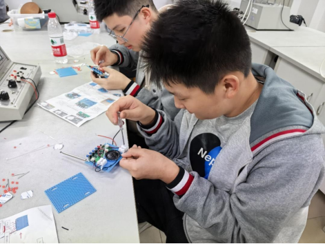 活动现场,无线电测向项目成为焦点。学生们手持测向仪,在月亮湖周围捕捉电磁波信号,通过团队协作完成“定位任务”。指导张教师介绍,该项目融合了物理、数学与信息技术知识,旨在培养学生的空间思维与问题解决能力。与此同时,“火焰掌”实验引发阵阵惊叹,研学同学在安全指导下亲身体验“掌中火焰”的奇妙现象,当水泡泡在掌心瞬间燃烧时,学生们既紧张又兴奋。在高压静电实验室,学生们通过感受静电的“魔力”,头发竖立、纸屑飞舞的场景引来欢笑不断。而马德堡半球拔河赛则以趣味竞赛形式,直观呈现大气压强的物理原理。手工组装收音机环节中,学生们在志愿者指导下组装电路、调试频率,当收音机成功播放出声音时,现场爆发出热烈掌声。